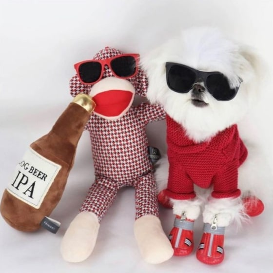 I bought this little monkey toy for my pup pokey, and she loves it. She carries it with her everywhere! It's durable too - she plays tug with it with me, and her best dog friend, and so far, it's alive!