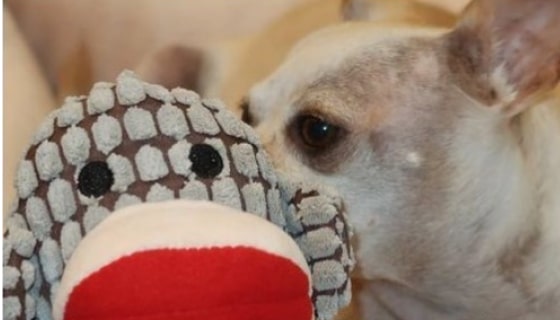 This is my 5 lb Chihuahua Lilly's favorite toy however the past couple of these I have purchased have ripped in the mid region and the stuffing has started to come out within an hour this is not normal I'm hoping its a bad batch. I have bought many of these and they usually last her 6 months to a year. I wanted to include a picture of her old monkey she still loves and uses she has had for over 6 months at least with no arms LOL but still works fine and no stuffing coming out, that is all that scares me because it could hurt her. Over all a great toy with a squeaker and she loves it.
